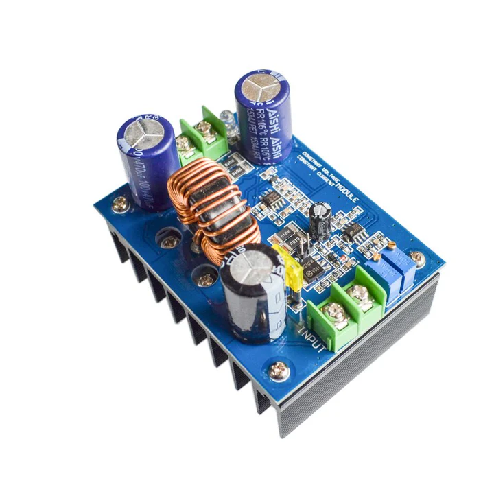 DC-DC 600W 10-60V to 12-80V  Step-up Boost Converter Module is a robust, DC to DC, Step-up Boost Converter which includes a large heatsink on the bottom and use a a boost converter for large DC Voltage.