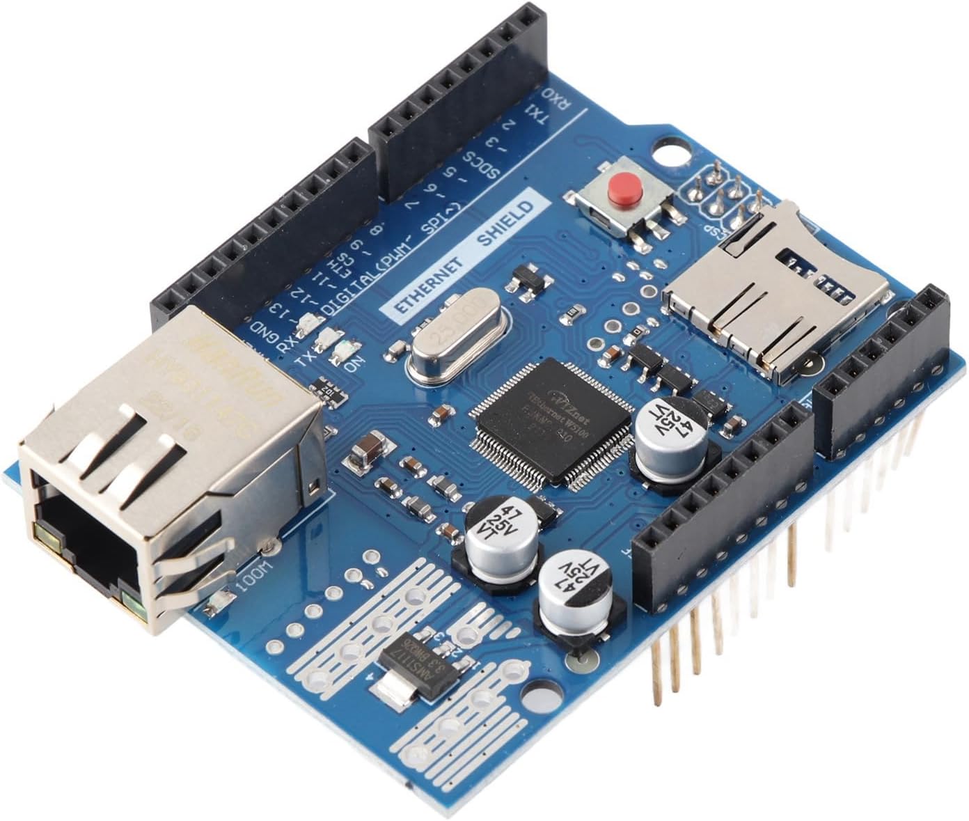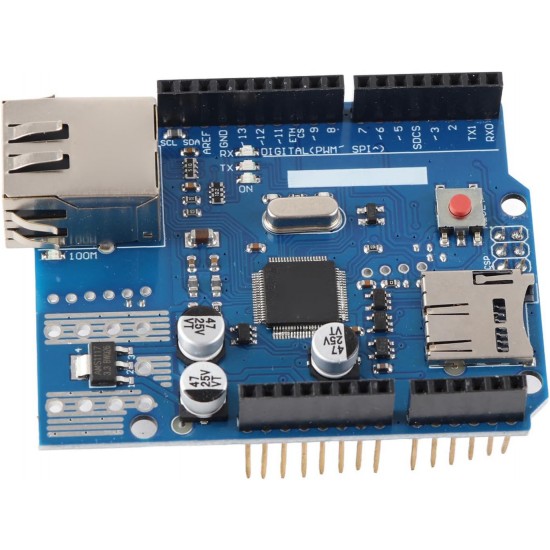 The Arduino Ethernet Shield allows an Arduino board to connect to the internet. It is based on the Wiznet W5100 ethernet chip. The Wiznet W5100 provides a network (IP) stack capable of both TCP and UDP. The Ethernet W5100 Shield Network Expansion Board w/ Micro SD Card Slot supports up to four simultaneous socket connections.